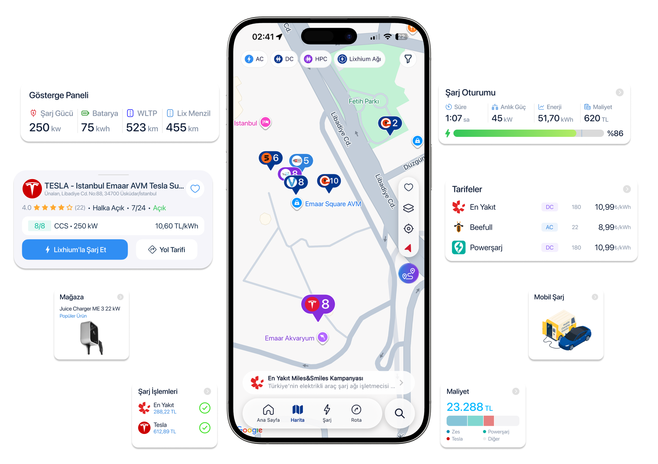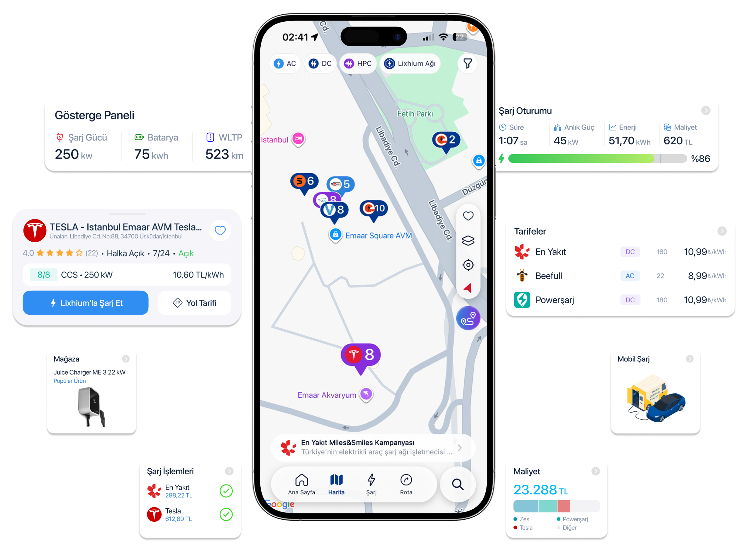 Lixhium, elektrikli araç sahipleri için akıllı şarj çözümleri sunan bir uygulamadır. Şarj istasyonu bulma, ödeme, analiz ve filo yönetimi gibi hizmetler sağlar. Hem bireysel hem de kurumsal kullanıma uygundur.