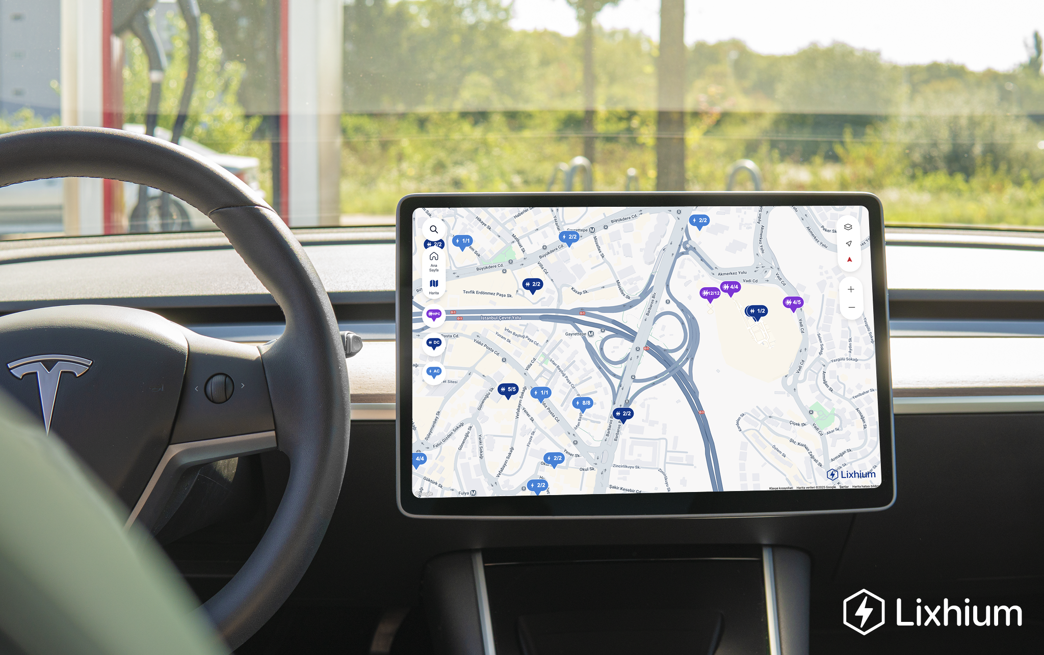 - Yakındaki sarj istasyonlarını interaktif haritada bulabilir ve kolayca yol tarifi alabilirsiniz.